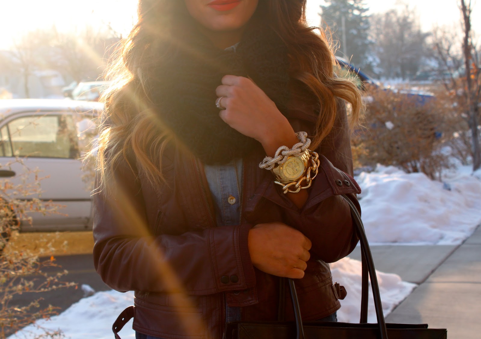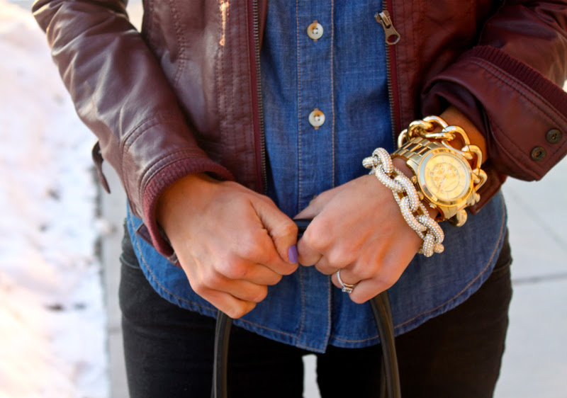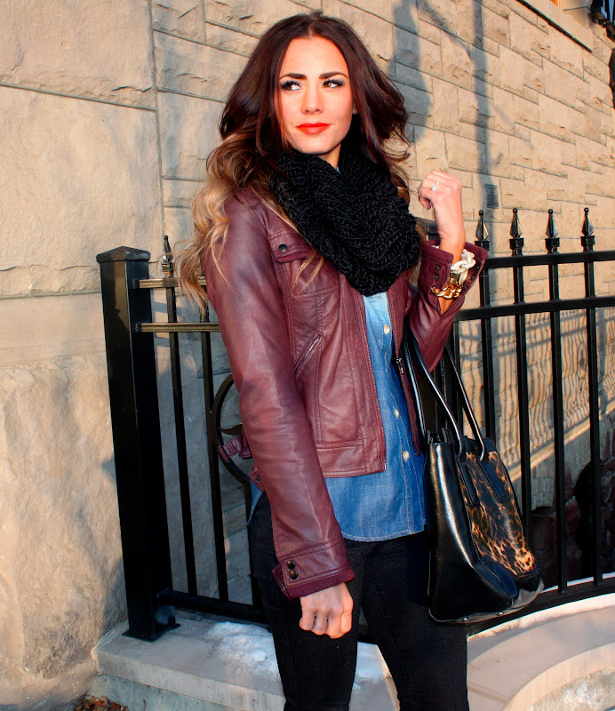 Top: Forever 21 (recent) | Jacket: Macy’s | Jeans: Tjmaxx | Shoes: Zara (on sale!) | Scarf: Ily Couture  | Lips: So Chad by Mac | Bag: Target