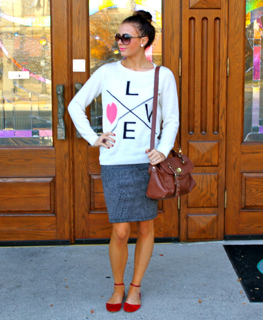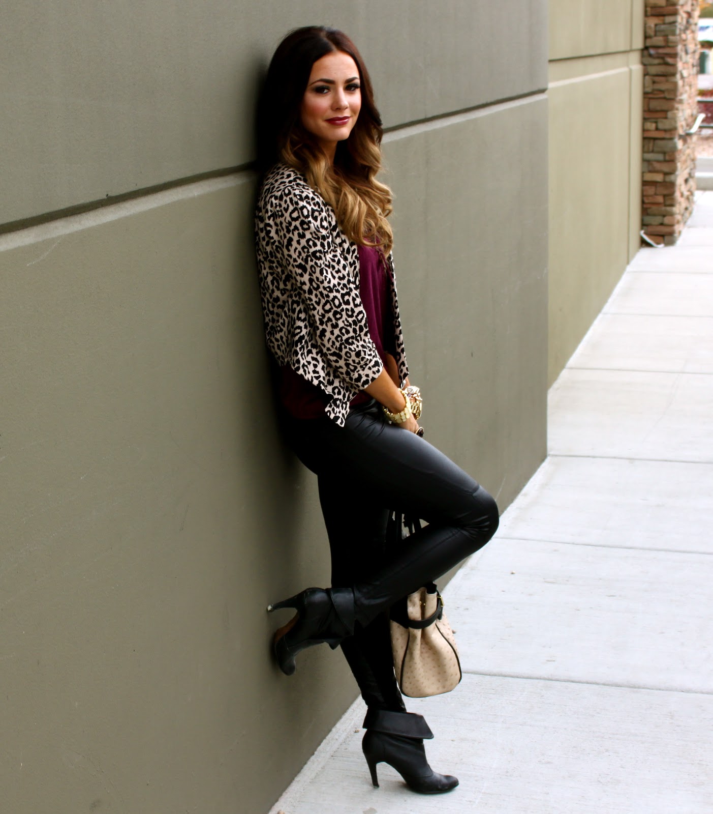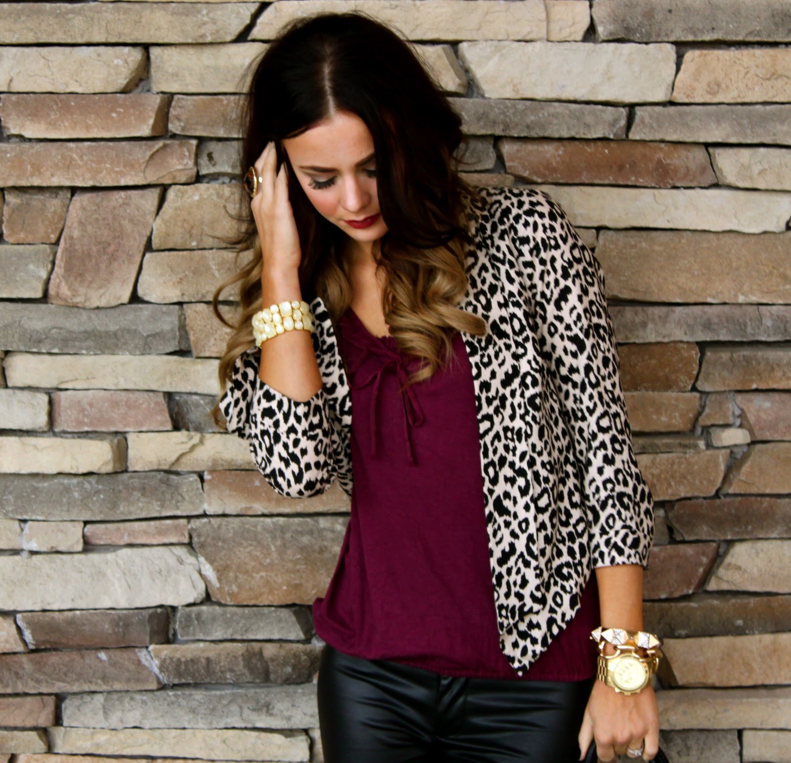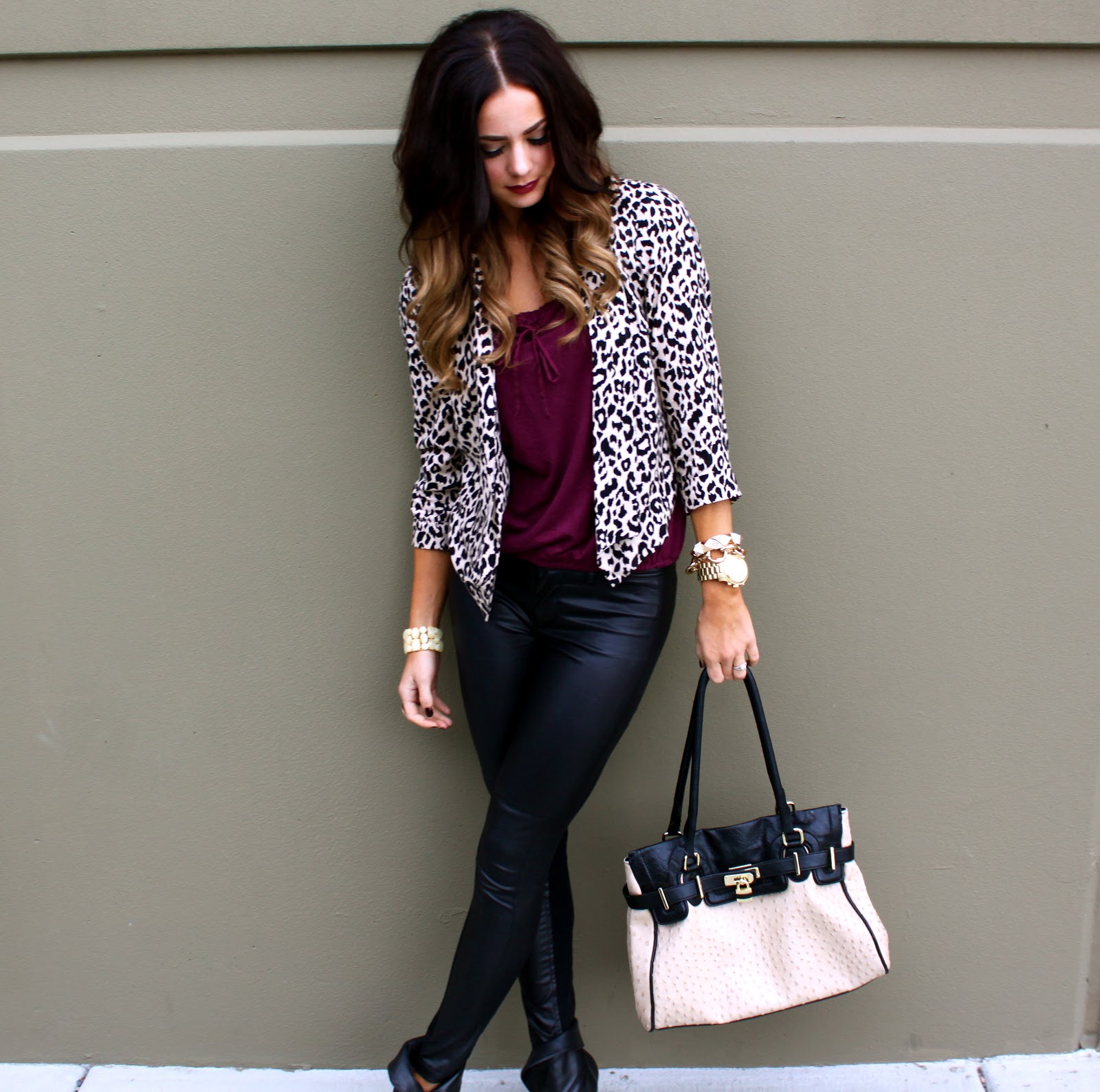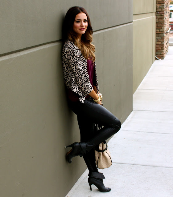 Top: Gap {Similar style here} | Bottoms: Esther Boutique | Jacket: Forever 21 {love this style here} | Shoes: Report {old, similar here} | Bag: Aldo | Jewelry: Michael Kors, Cheerfully Charmed, Forever 21 | Lips: Viva Glam 111 Mac.