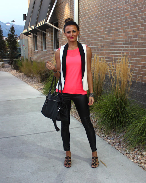 I am loving metalic this season! Pull together any outfit with a pop of color, like I did with the orange blazer.