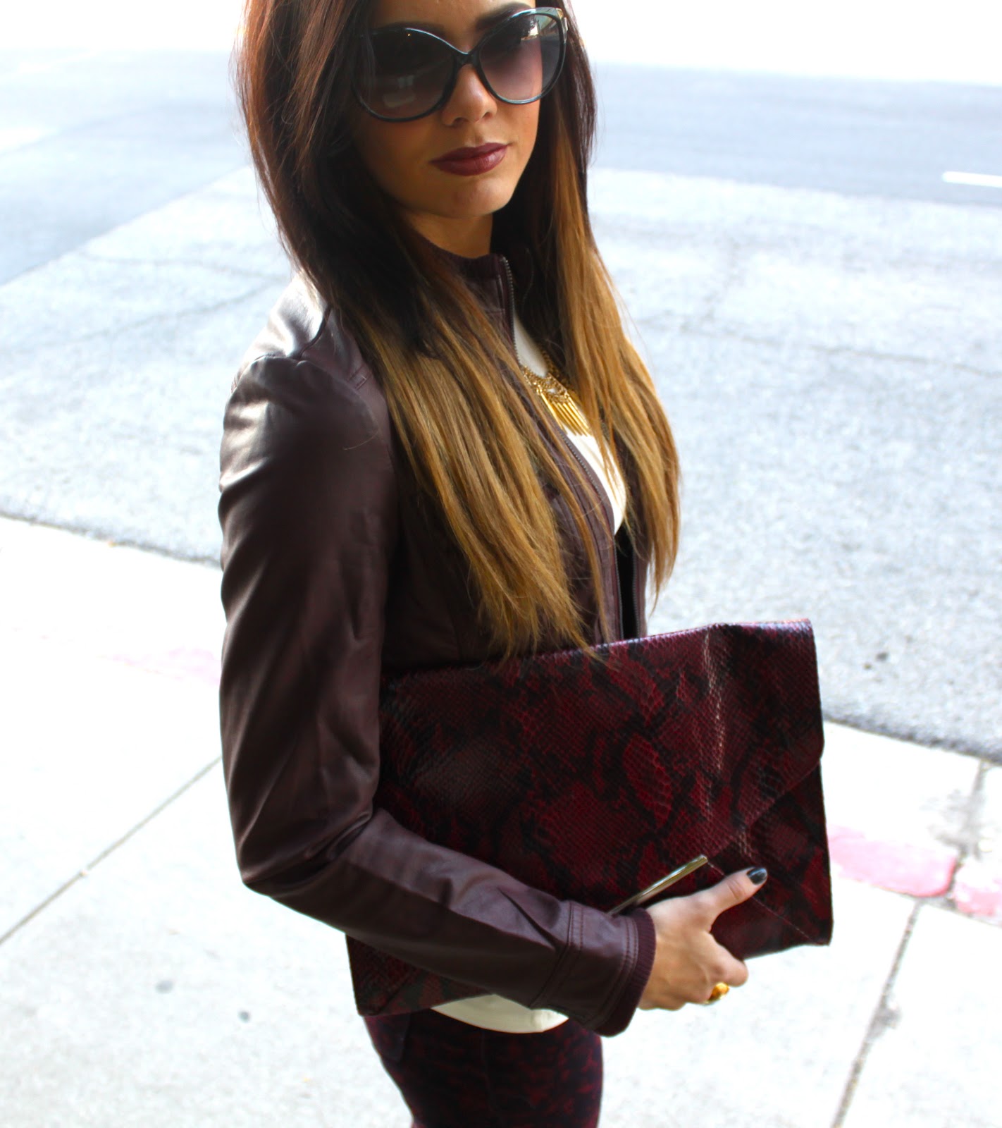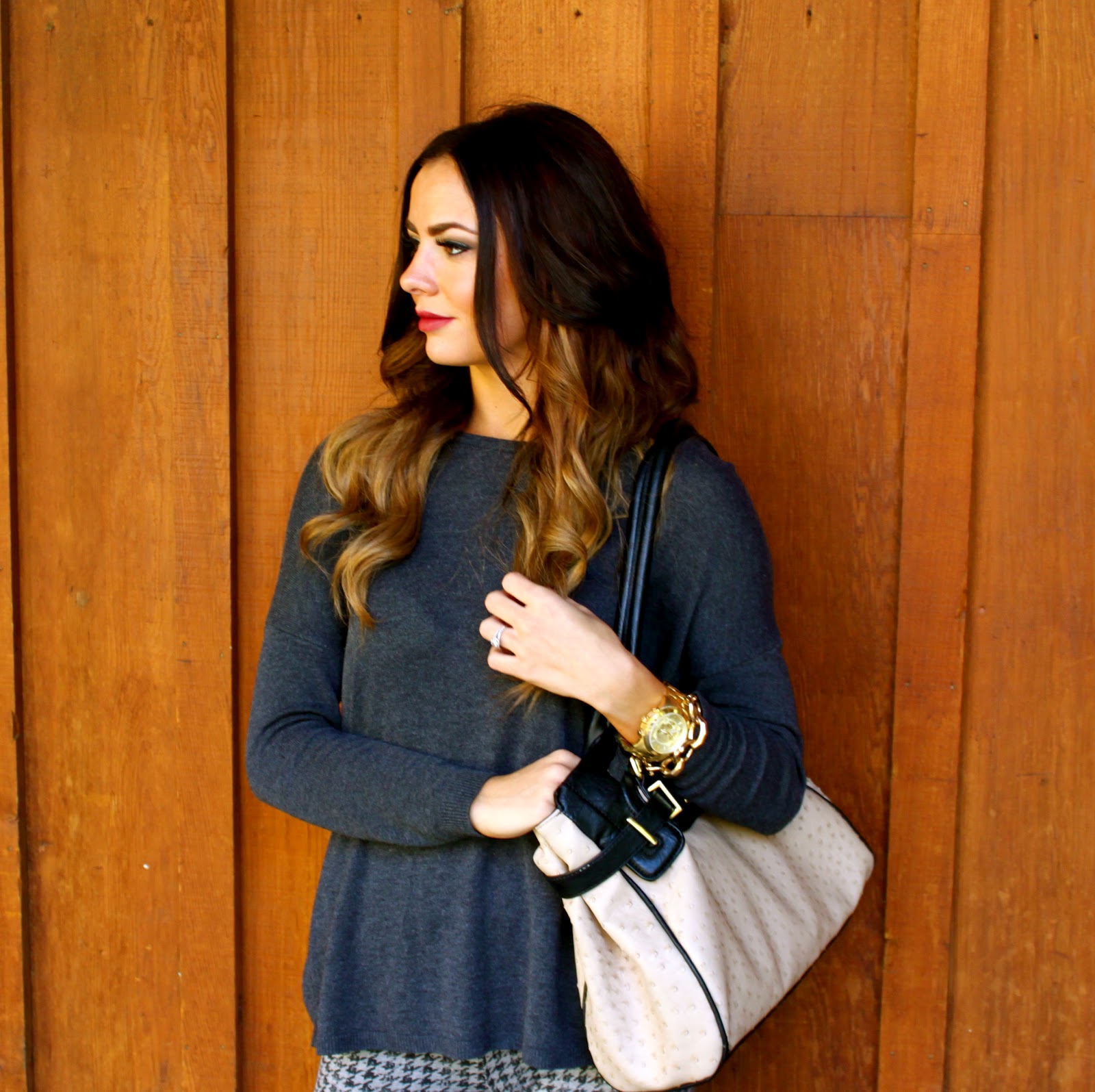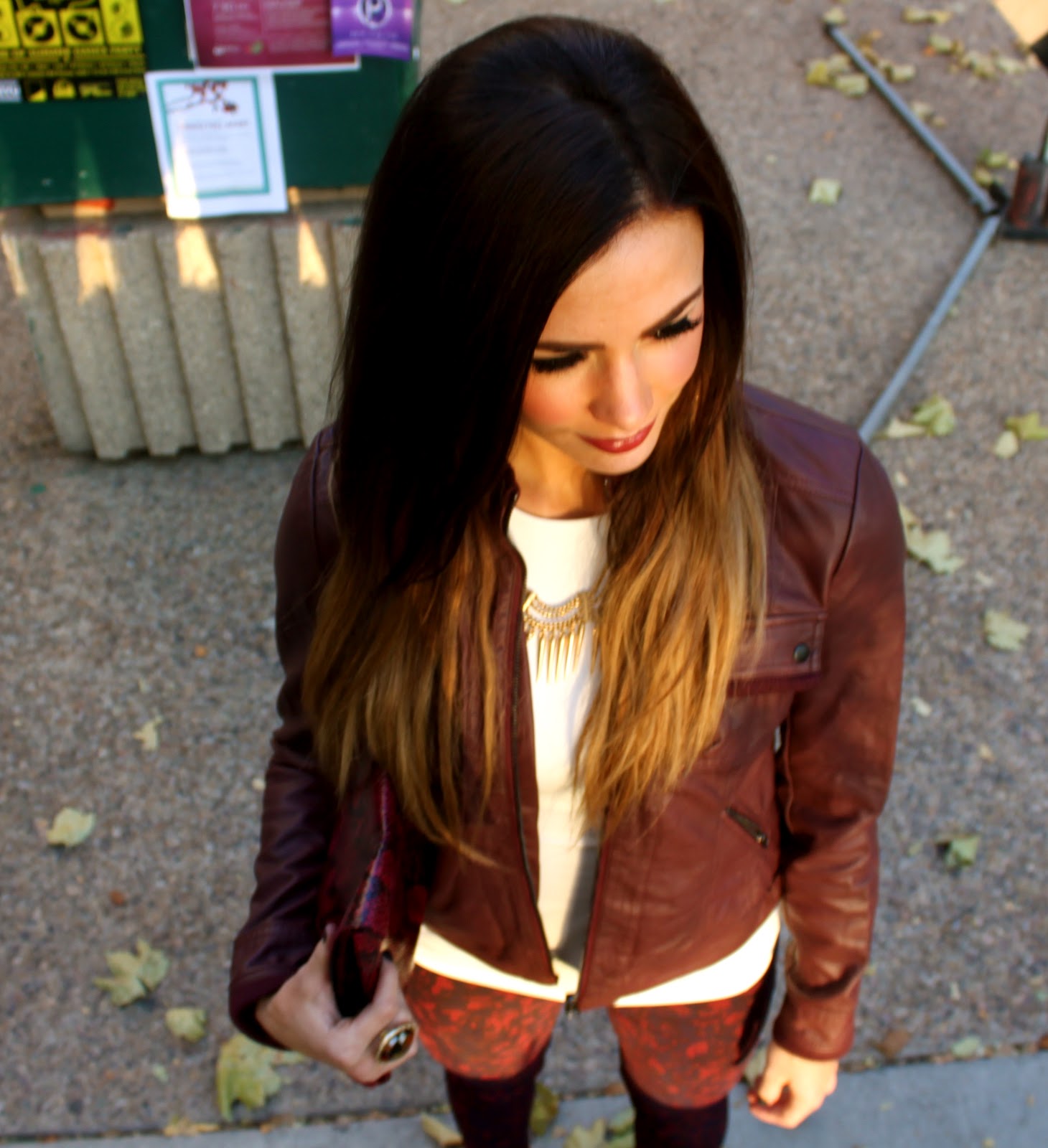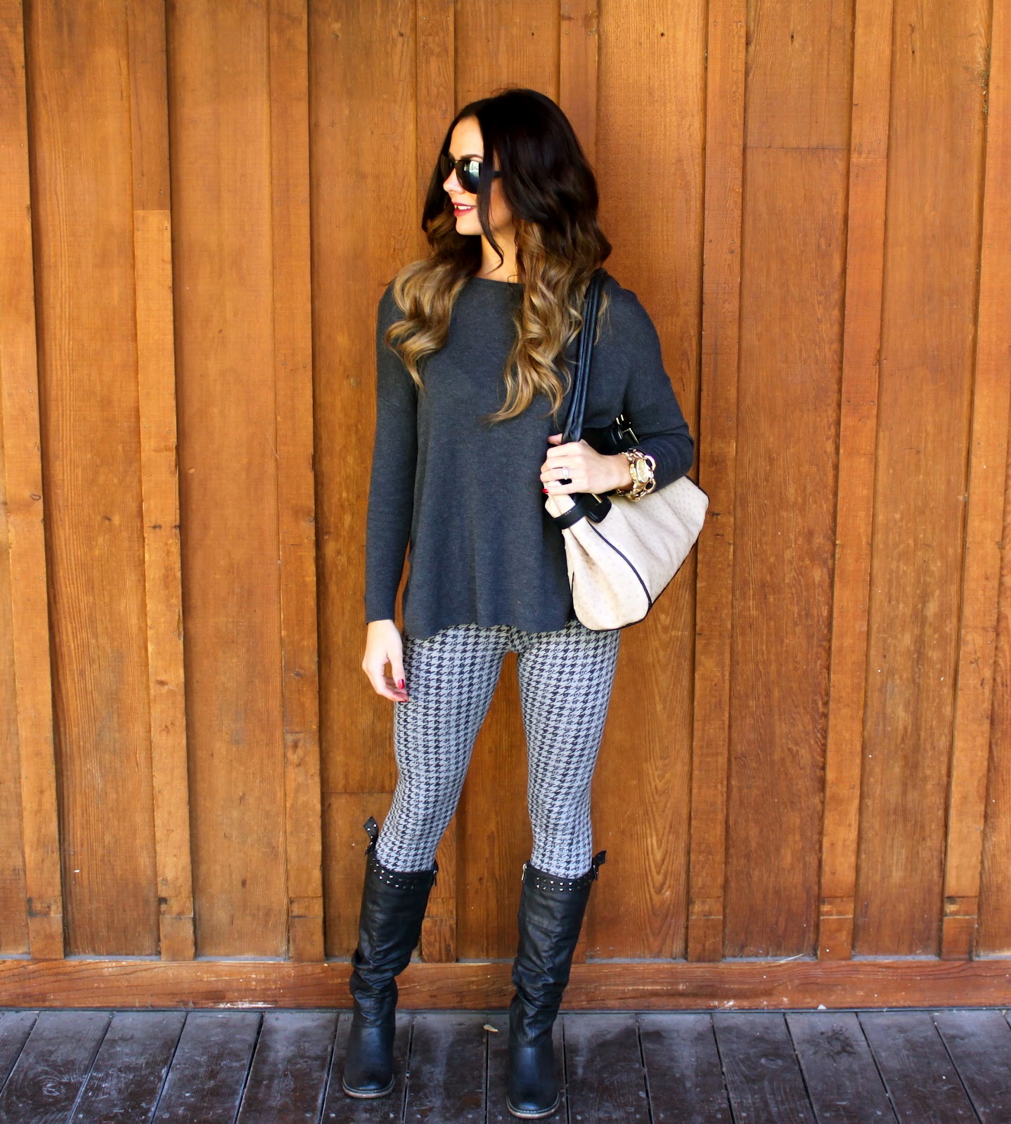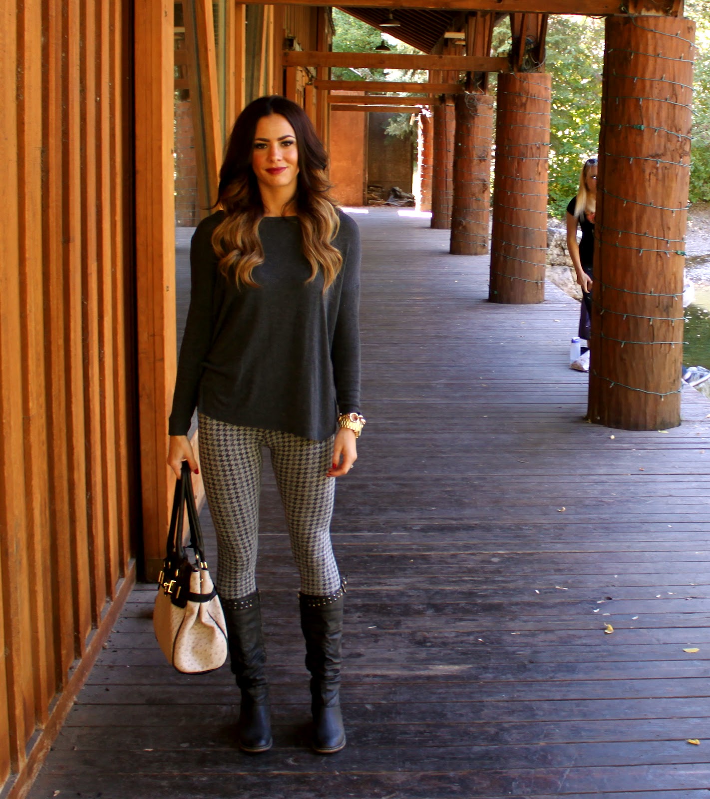 Top: Forever 21 | Leggings: Macy’s {just recently} | Boots: {old, similar here} | Bag: Aldo | Jewelry: Michael Kors & Cheerfully charmed | Lips: MAC viva glam. | Sunnies: Bohme.