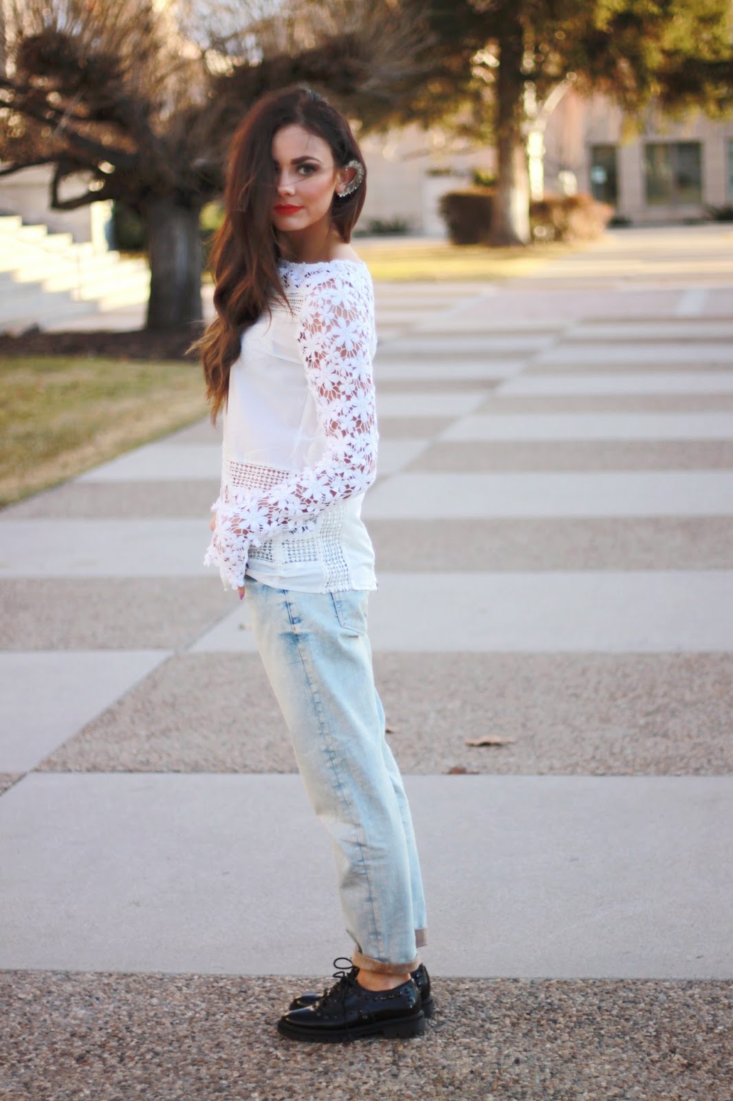 Happy Wednesday! This top reminds me of Spring so I figured I would break it out early since it felt like Spring this past weekend. I love the off white and beautiful lace details on the sleeves.