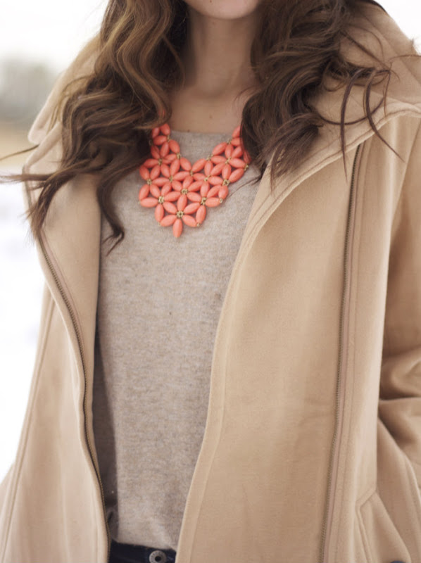 2. La Flor peach necklace looks fabulous with neutrals because it makes any outfit pop. Like how Hello fashion blog styled it below.