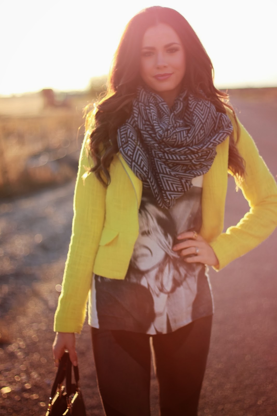 Those leggings look amazing on you! I love leather leggings—I have a pair from forever 21 (faux leather) that I would wear everyday if people wouldn’t ask questions! haha. That tee is so fun and the pop of yellow in your jacket is gorgeous!