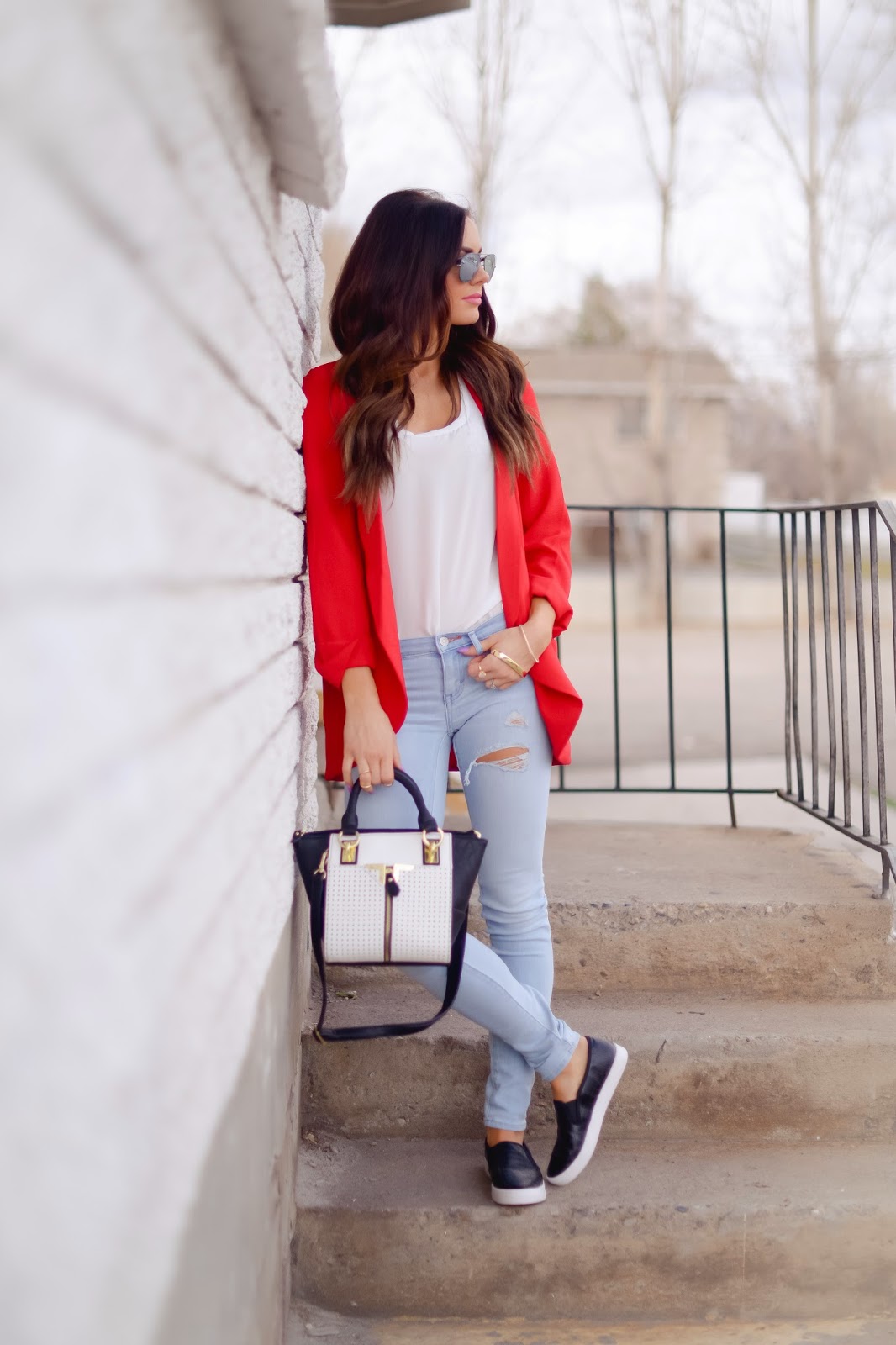 There is nothing more cool and chic then sneakers and your favorite pair of ripped jeans, blazer, and Ray-Bans!