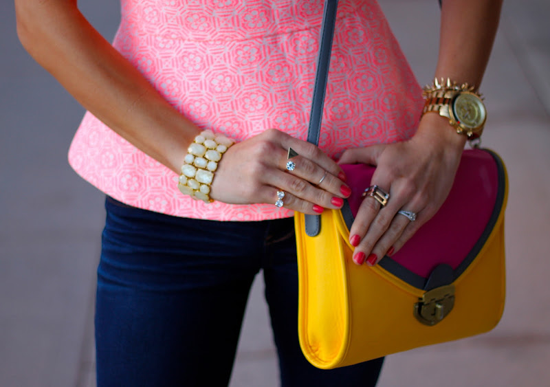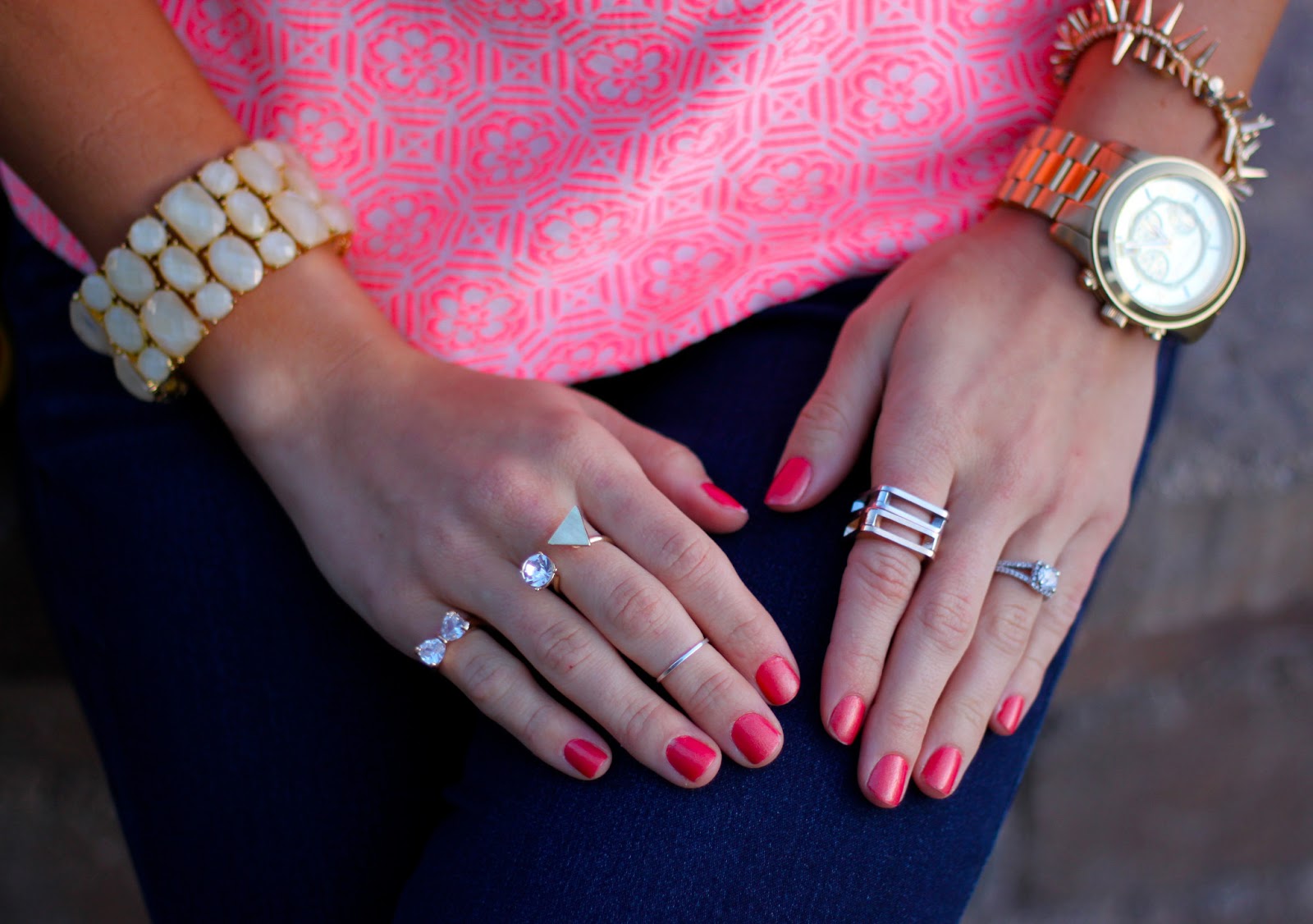 Top: Forever 21 | Jeans: Express | Shoes: Zara old, but similar here | Purse: Francesca’s | Necklace: Recherche | Diamond Bow ring: Recherche | Bracelet: Siramara | Watch: Micheal Kors | Diamond ring: Style lately