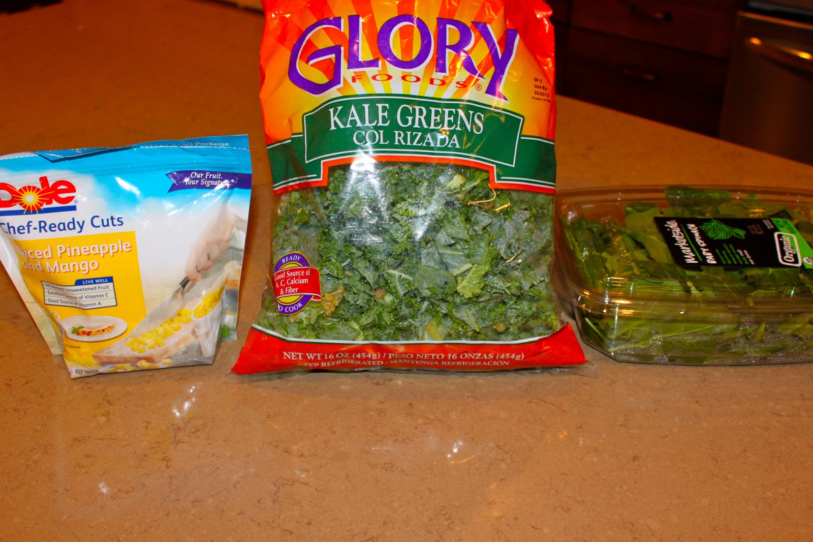 Another cup of Pineapple and Mango mix. This will help it blend better by putting another cup on top of the greens.
