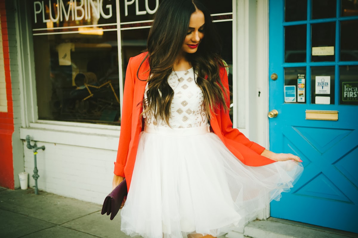 Gorgeous look! I love the dress with the red blazer!