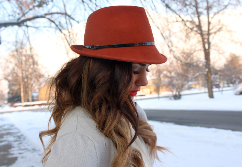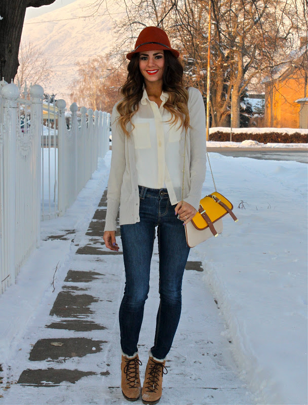 Top: Target | Cardigan: Forever 21 (old) | Hat: Tjmaxx | Jeans: Nordstrom | Bag: Steve Madden | Shoes: Michael Kors (old, but similar here) | Lips: So Chad by Mac